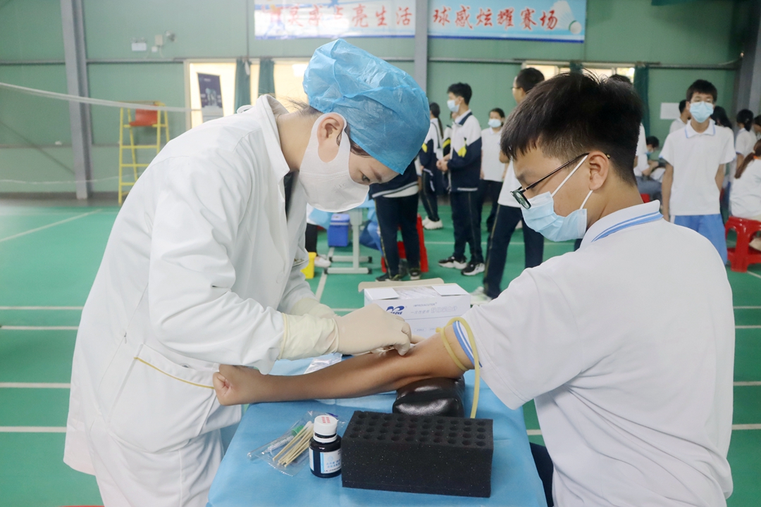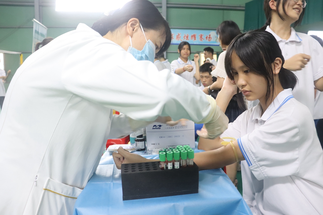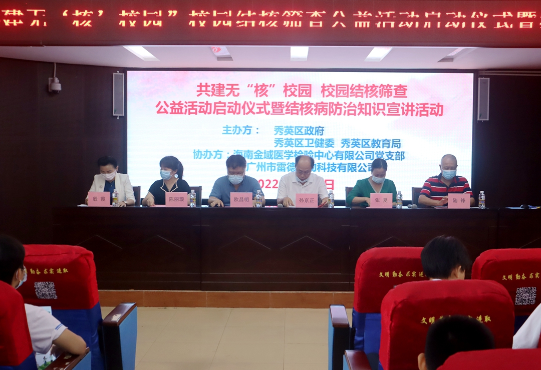 本次活動由海南省海口市秀英區衛生健康委員會和秀英區教育局統一部署,由廣州市雷德生物科技有限公司(簡稱雷德倍爾)協辦。秀英區政府孫京正調研員、秀英區教育局張夏主任、秀英區疾控中心歐昌明主任、海口市第十四中學陸鋒副校長以及雷德倍爾市場部殷霞主任等相關領導出席活動并發表講話,海口市第十四中學100余名師生代表共同參加和見證了公益活動啟動儀式。