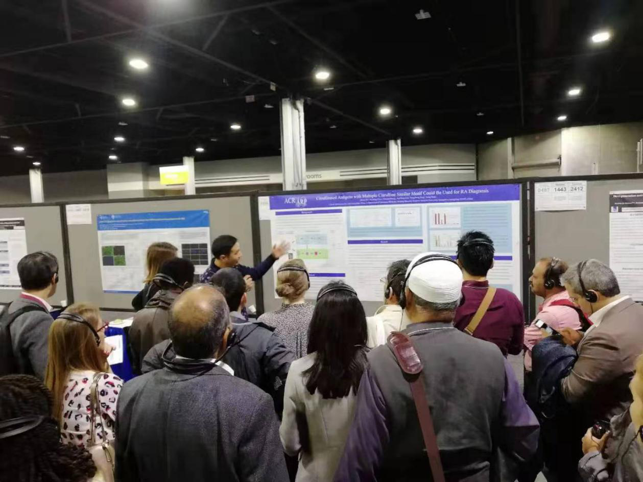 美國風濕病學會(ACR)是一個致力于改善風濕病患者的護理和促進風濕病專科發展的專業會員組織。ACR成立于1934年,是一個非營利性、全球醫學協會,為全球超過9600名醫生、衛生專業人員和科學家服務。ACR通過提供有意義的教育、研究、宣傳和實踐支持來促進其成員發展。我公司楊博士攜RA_CP(類風濕性關節炎瓜氨酸化蛋白檢測試劑盒)首亮此次會議。